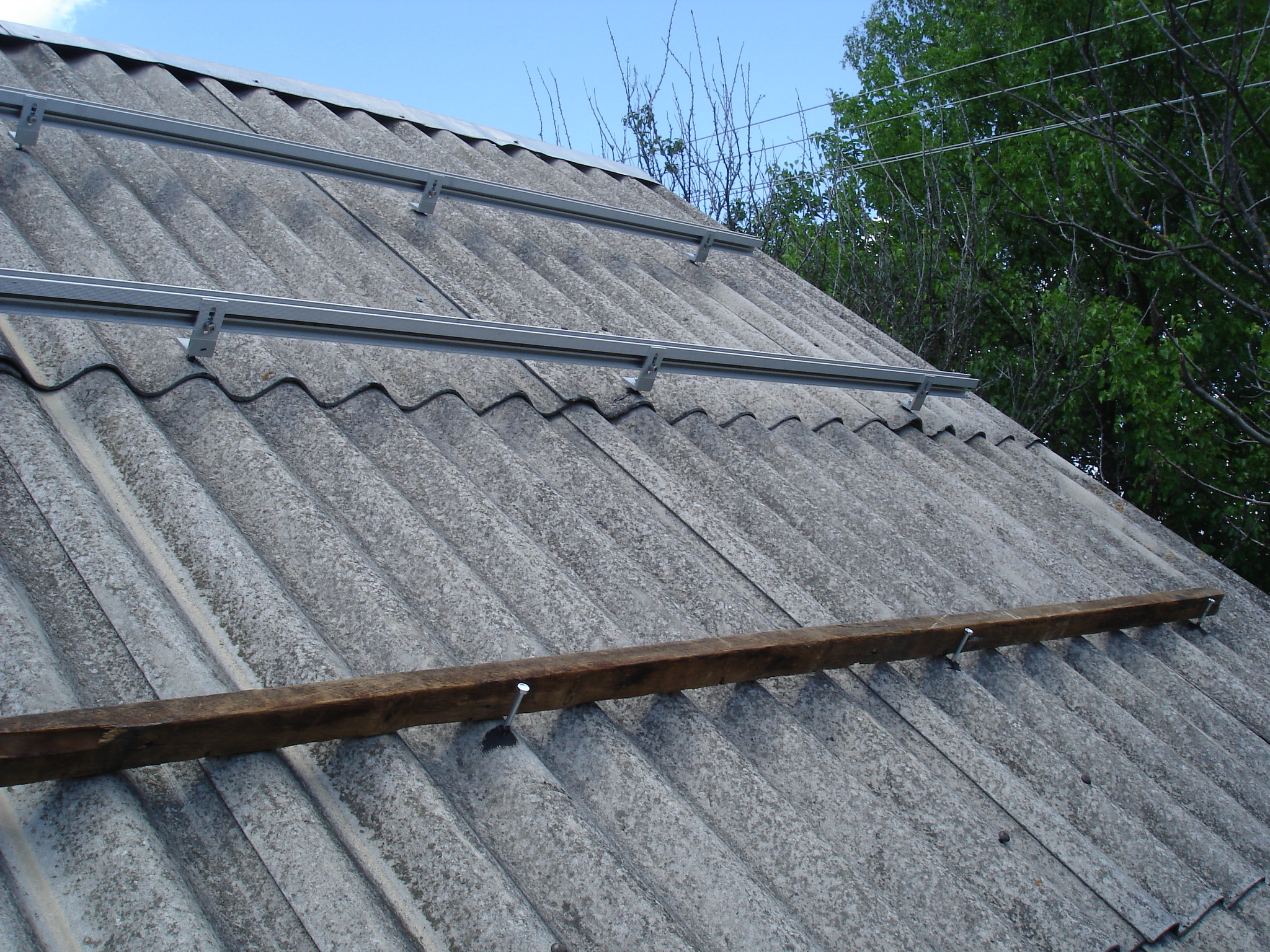 Рейки для батарей прикріплено до кронштейнів. Знизу видно технологічну рейку для пересування.
