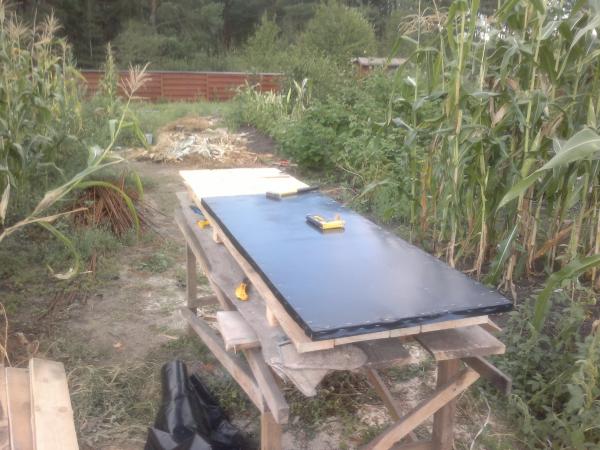 Подготовленные щиты затягивал в плёнку.