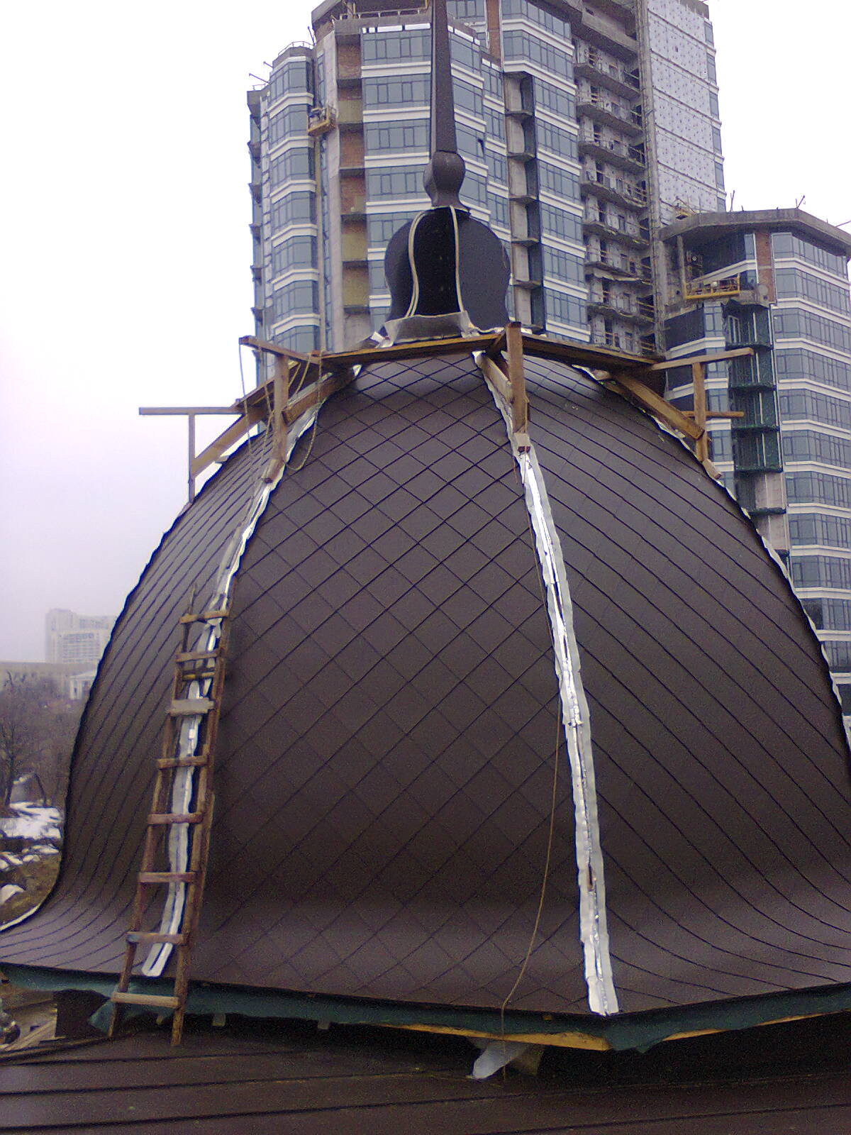 монтаж шпиля и маковки